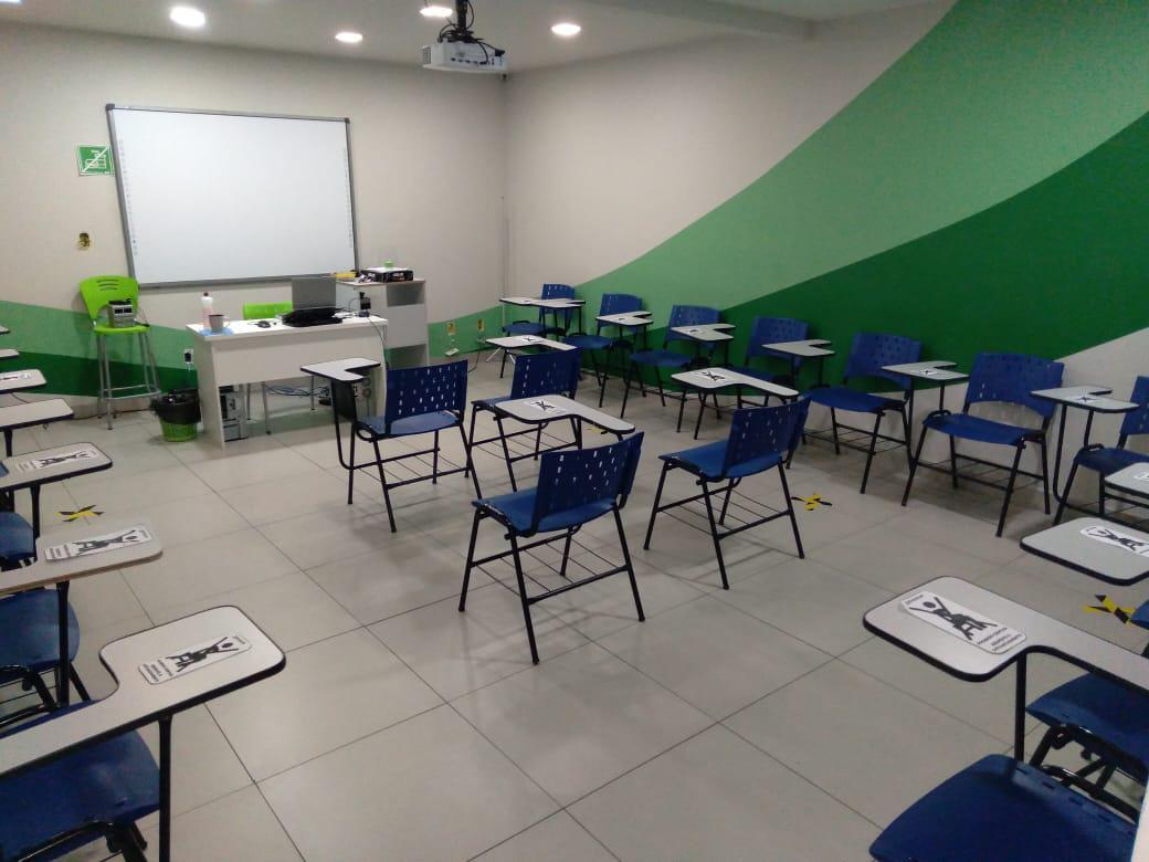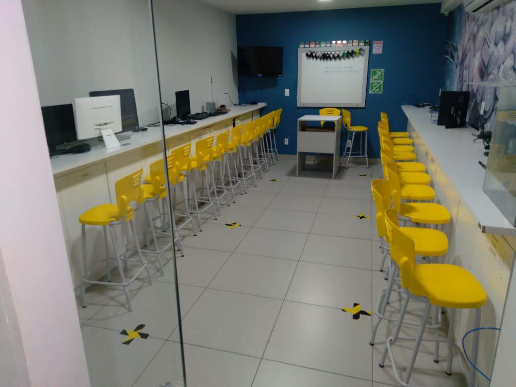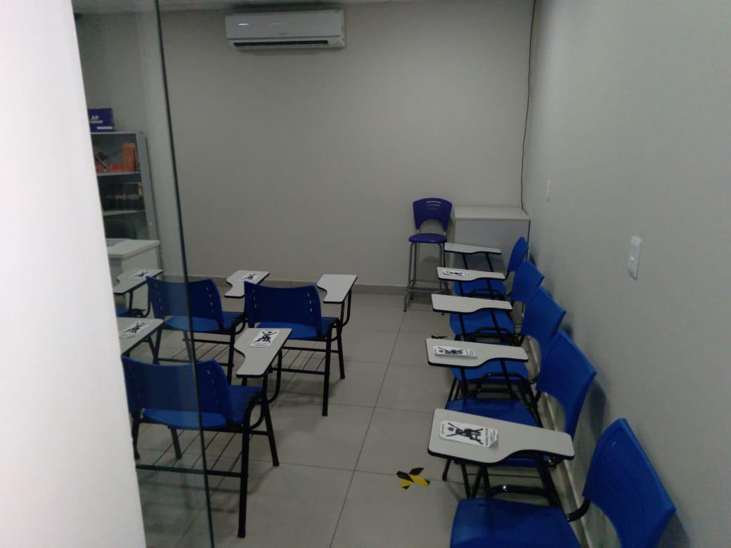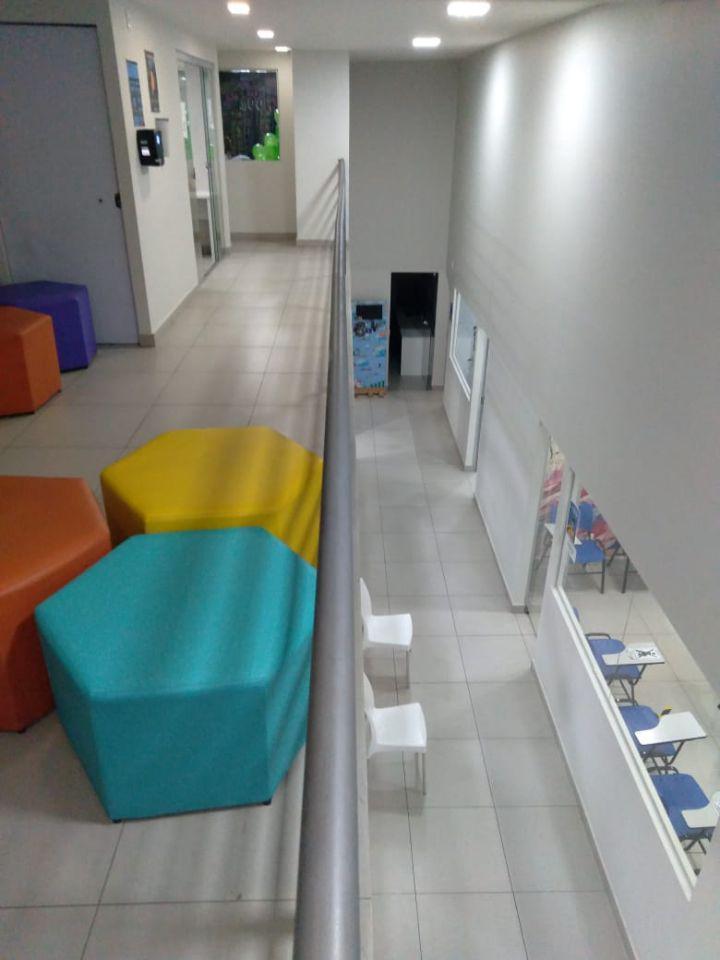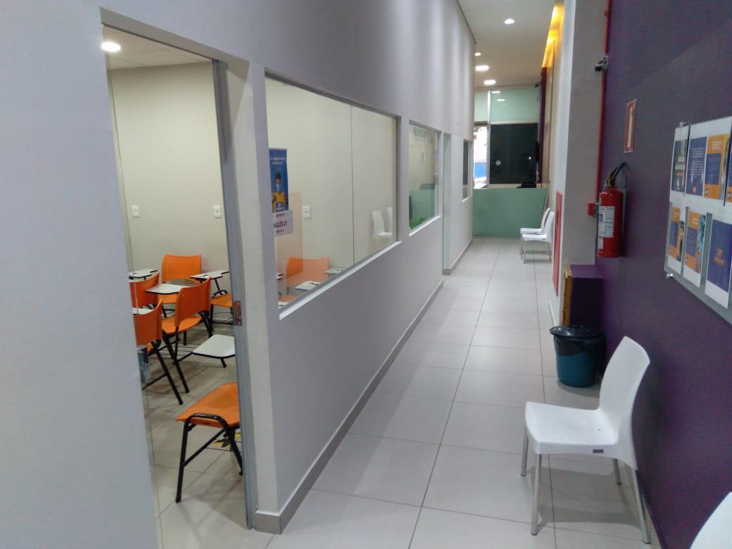 Loja está projetado para escolas/coworking com 10 salas, 04 banheiros, mezanino com copa/cozinha, recepção e 05 vagas disponíveis.