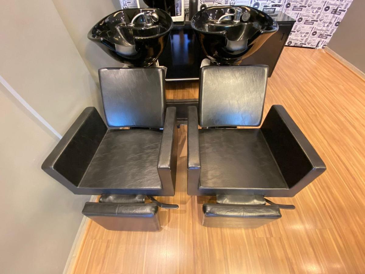 Na parte principal temos 3 cadeiras da marca Van De Velde com espelhos e bancadas laqueadas. 2 lavatórios. Banheiro para clientes.