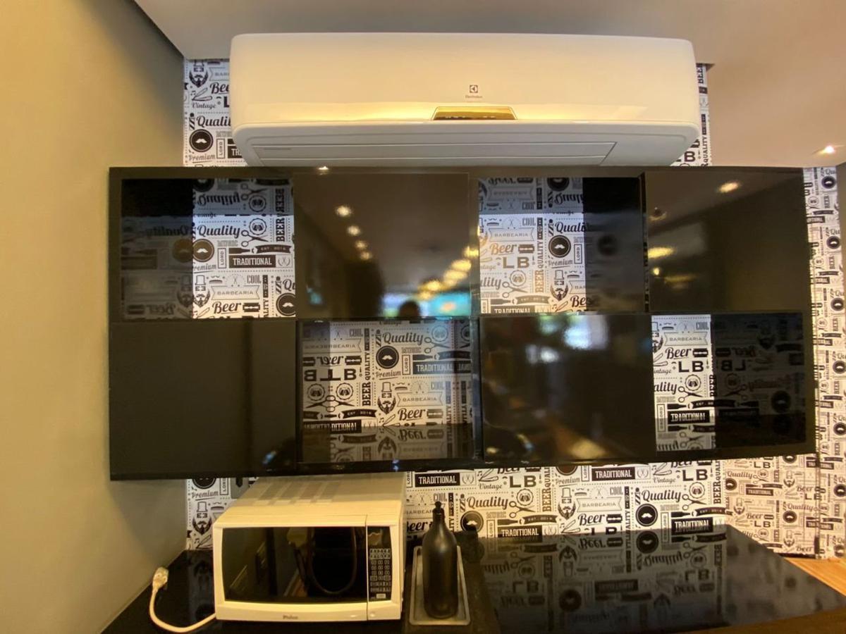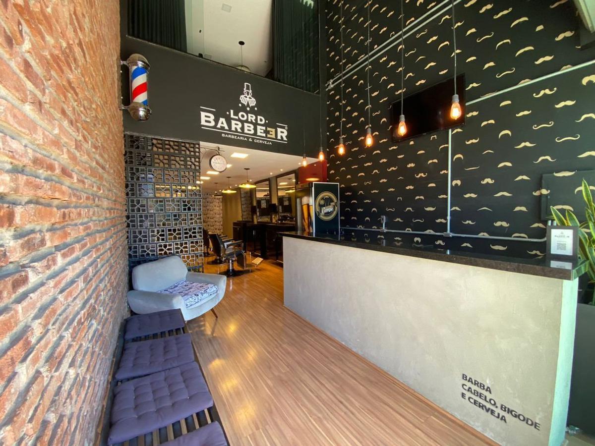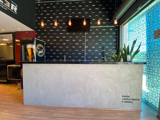 A barbearia tem recepção toda montada com balcão, banco e cadeira de espera. Som ambiente com controladora da marca Oneal.