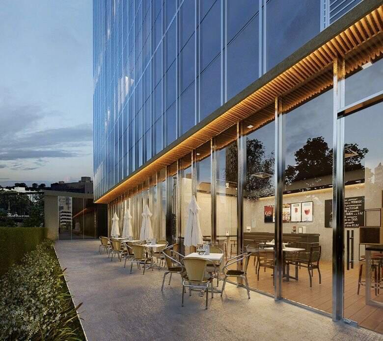 No térreo, são 9 lojas com serviços que promovem conveniência e dinâmica comercial no edifício.