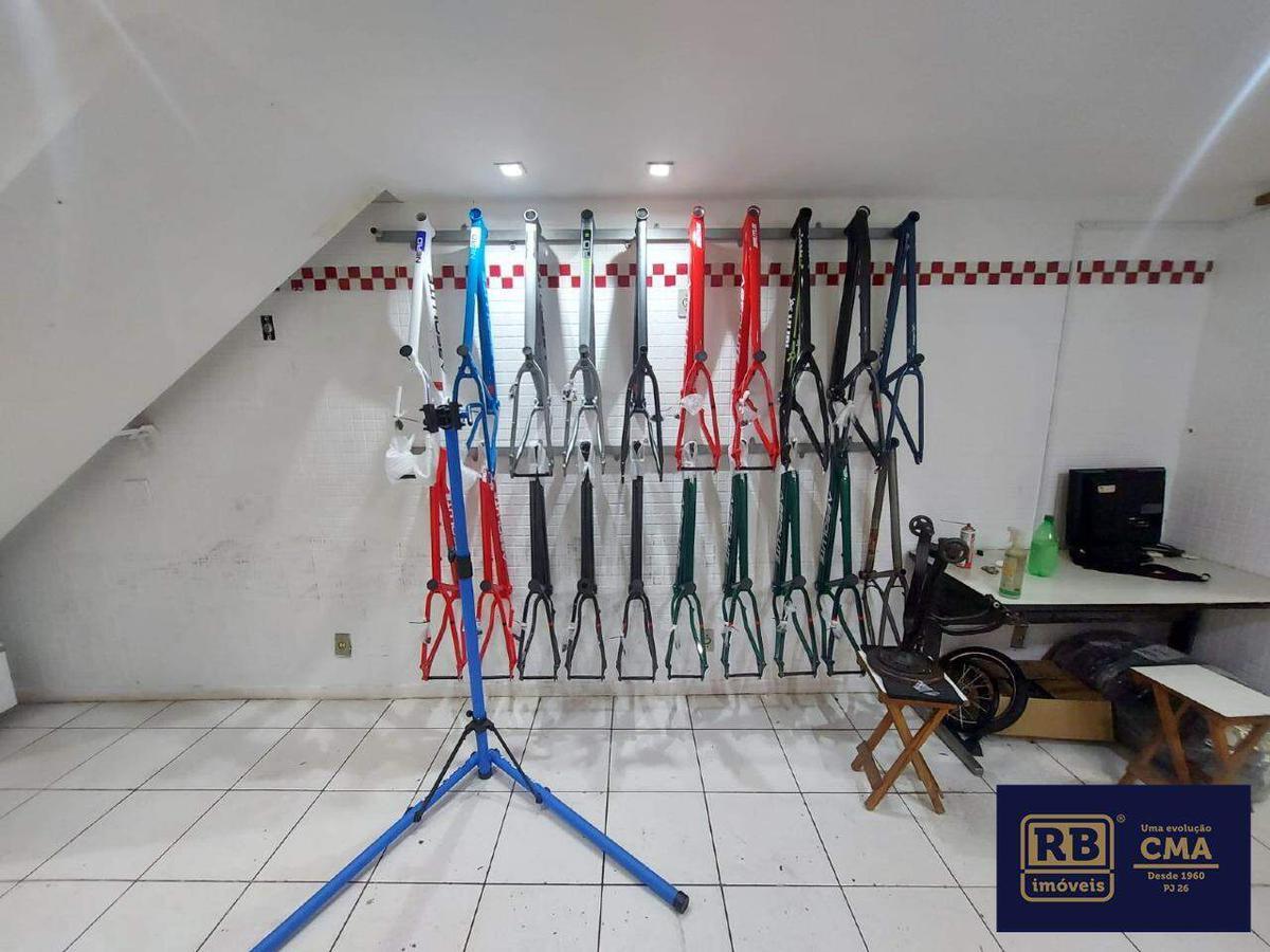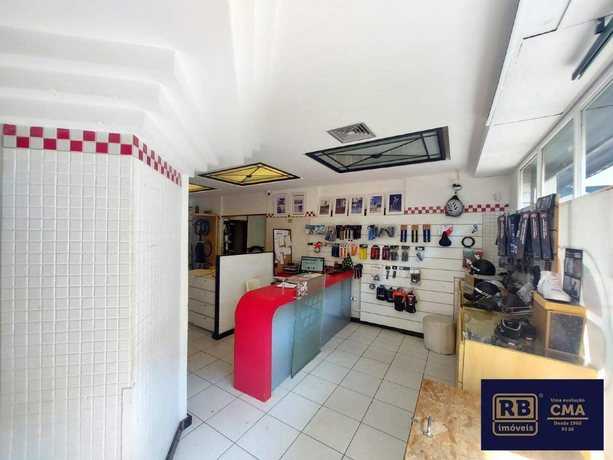 Excelente loja com sobreloja de frente para a rua. No piso inferior são 72,02 m² divididos em vários ambientes, com cozinha e 3 banheiros. Na sobreloja possui salas divididas com divisórias. Possui um espaço extra que pode ser usado pra estoque de materiais ou peças.