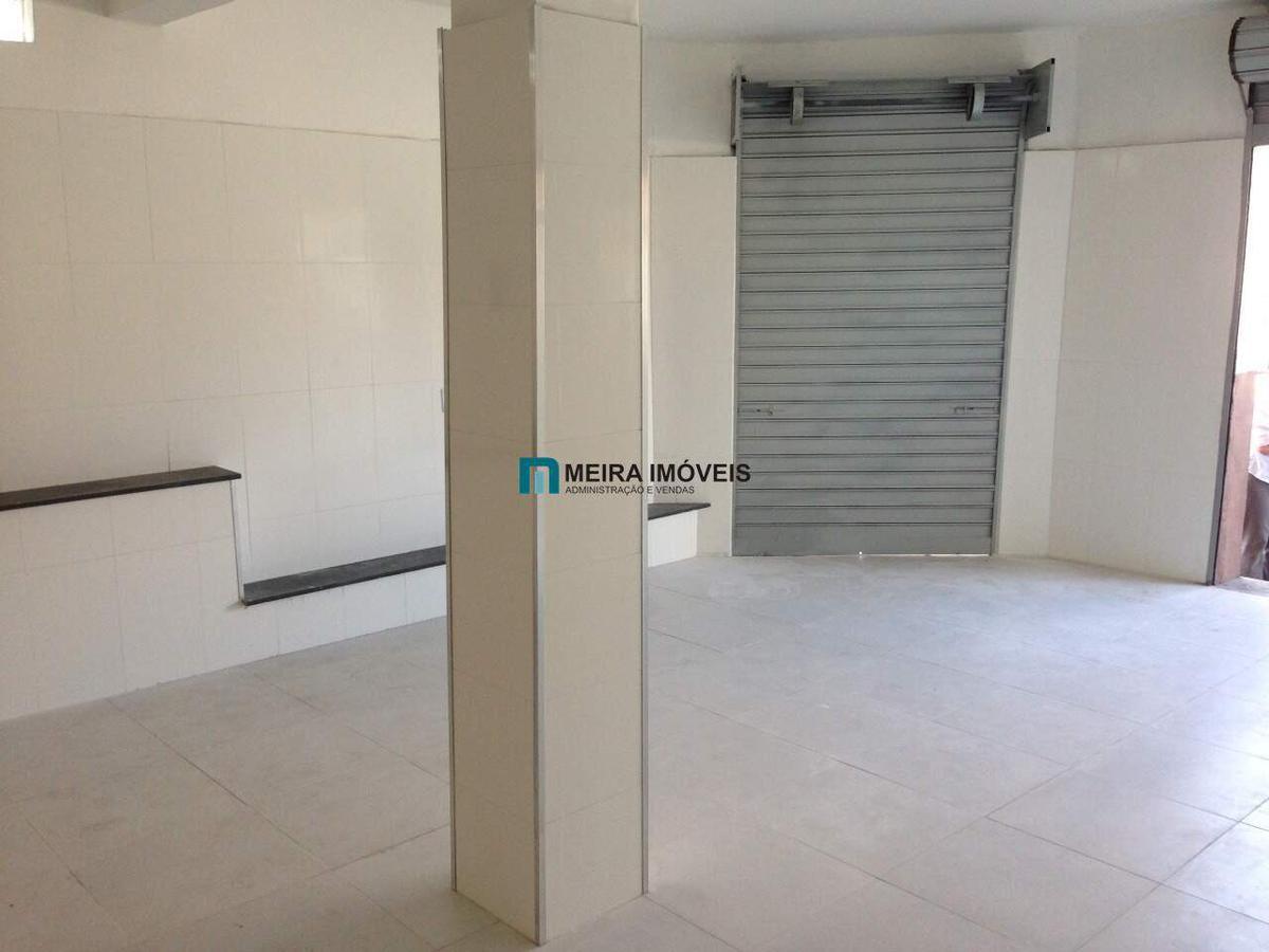 Loja com aproximadamente de 42 m² com banheiro e porta para a esquina da rua.