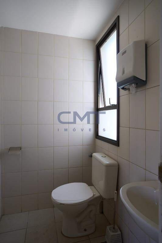 O andar dispõe de três banheiros e uma copa com bancada em granito e armário planejado.