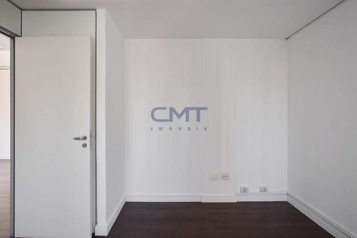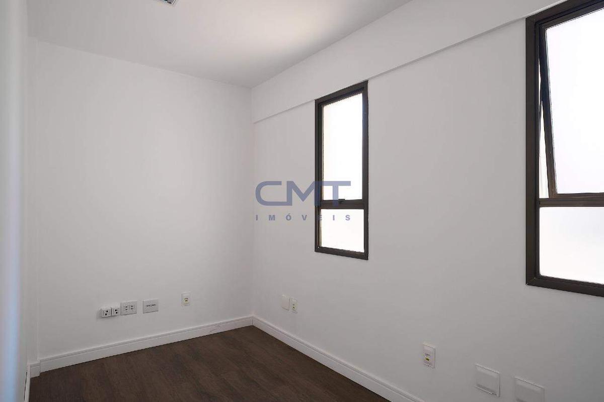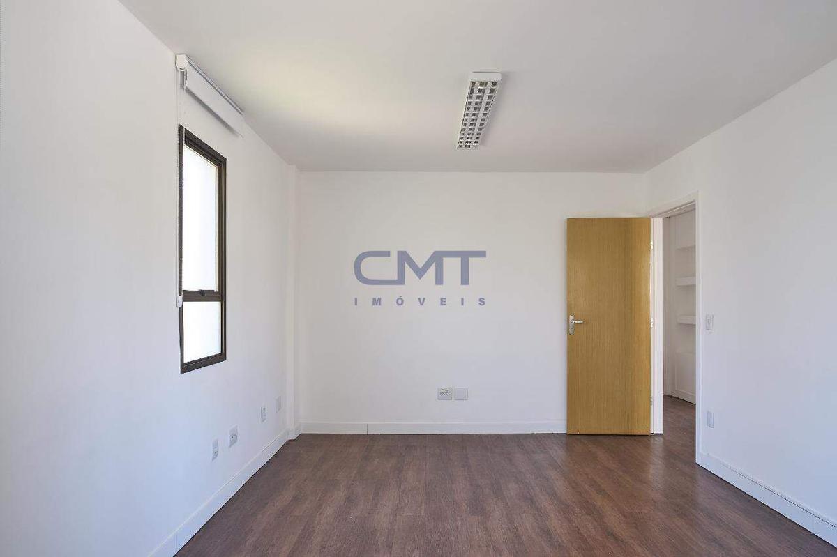 O andar dispõe de três banheiros e uma copa com bancada em granito e armário planejado.