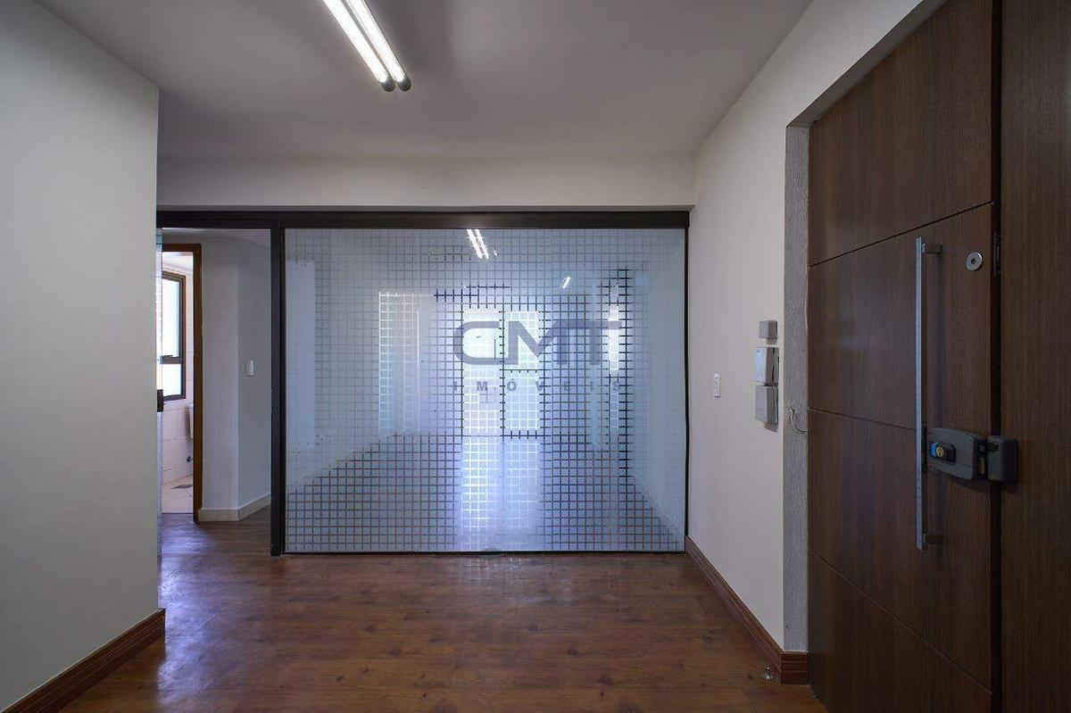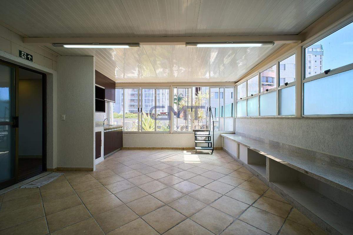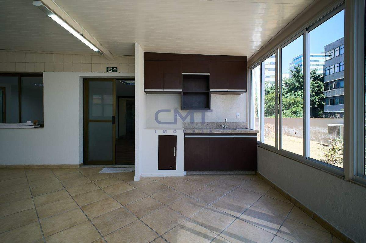 O andar dispõe de três banheiros e uma copa com bancada em granito e armário planejado.