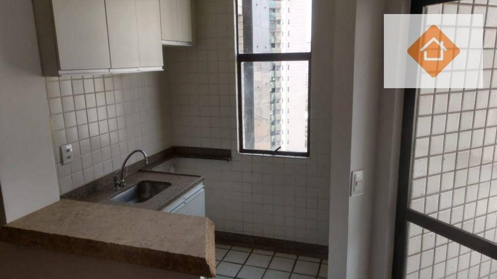 Excelente flat com sala para dois ambientes, suíte ampla, cozinha funcional e varanda. Armários no quarto e cozinha; Claro e arejado. Ótima vista.
