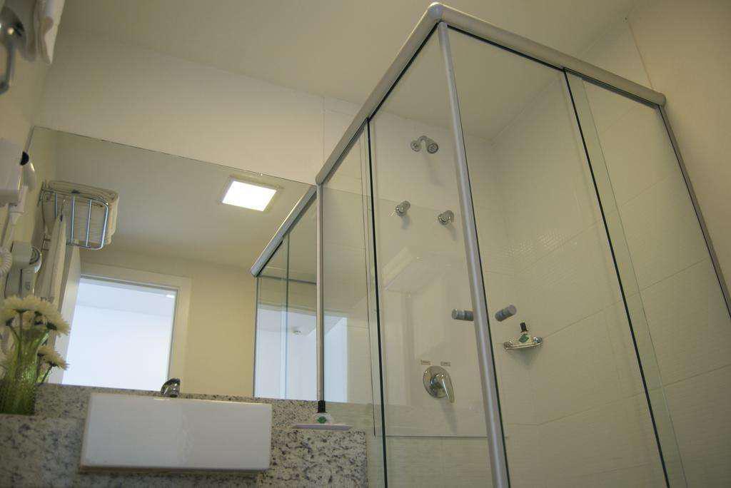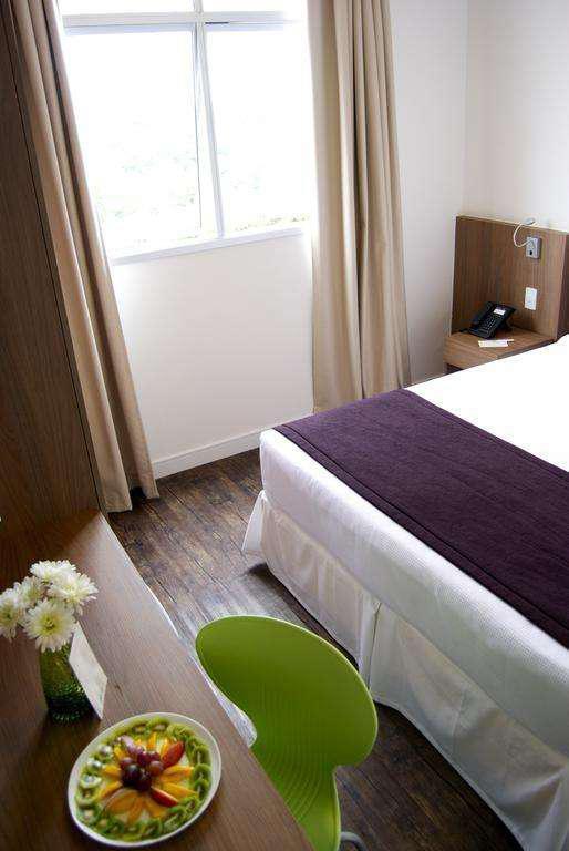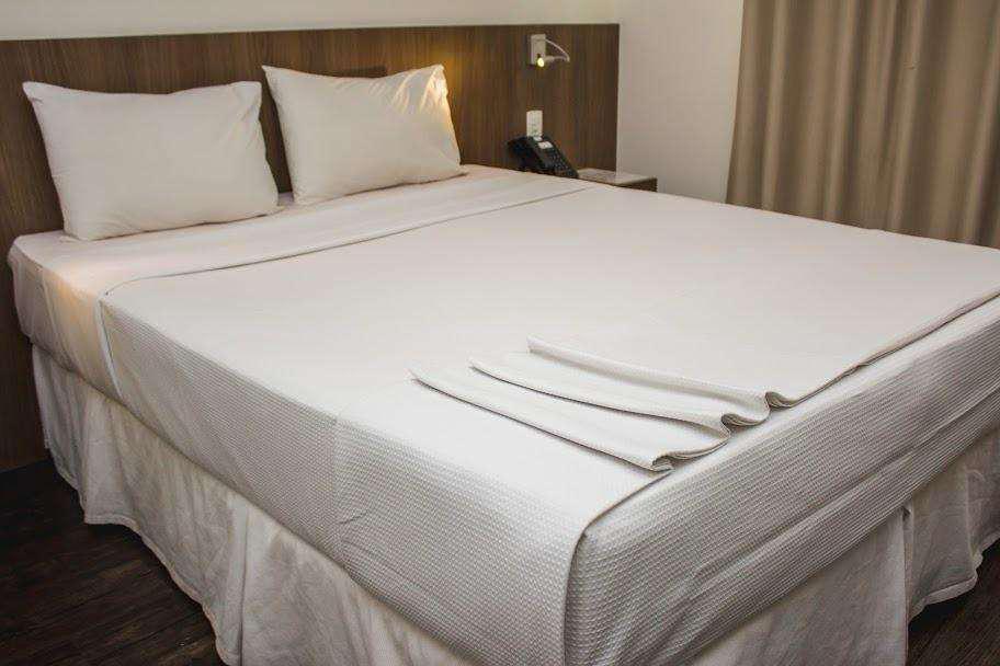 01 Quarto com cama de casal, ar-condicionado, TV a cabo, cofre eletrônico, frigobar, bancada, armário e piso em laminado de madeira;