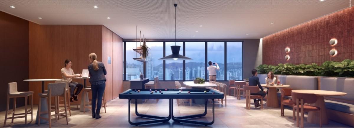 Estrutura de lazer como espaço fitness, piscina com deck, lounge festas, espaço gourmet, terraço descoberto com vista, lavanderia,