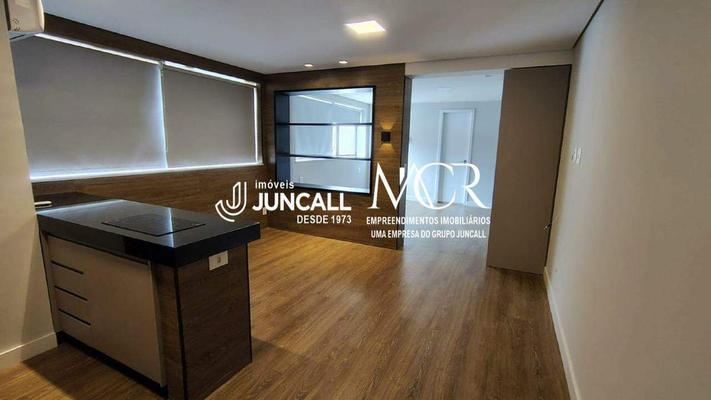 Loft com aproximadamente 36m² distribuídos em sala com piso em laminado de madeira e ar-condicionado, 1 quarto suíte com armário, piso em laminado de madeira.