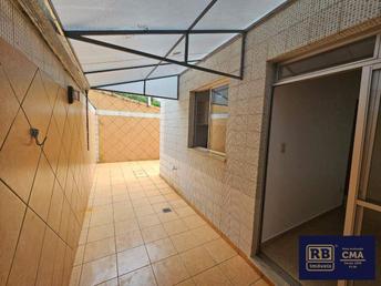 Ampla área privativa com parte coberta por toldo e área aberta, além de espaço destinado à um jardim.