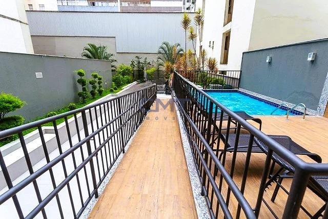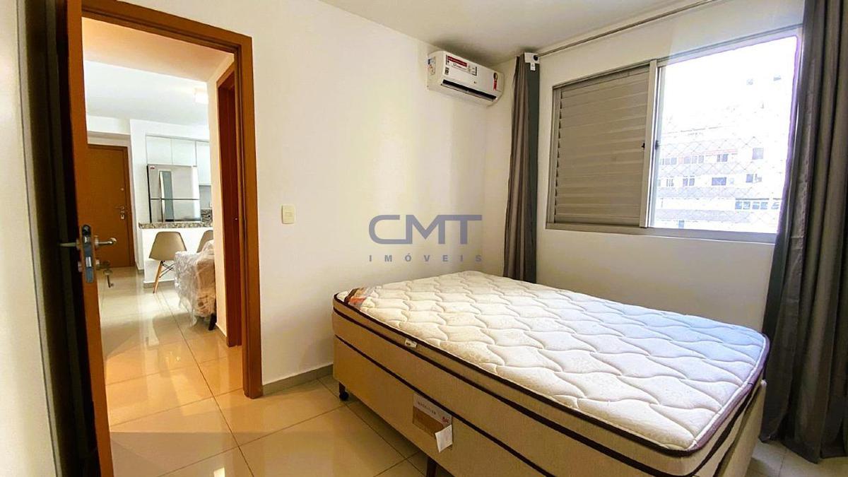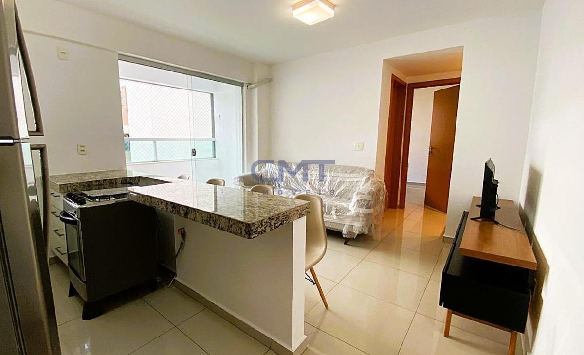 Apartamento de um quarto com aproximadamente 40m². A sala integrada à cozinha americana, já equipada com fogão, geladeira e armários planejados. Conta ainda com varanda com vista para piscina, banheiro com armários e iluminação, além de um quarto confortável com ar-condicionado e armários. O imóvel é totalmente mobiliado, pronto para morar, e dispõe de 1 vaga de garagem coberta e demarcada. O prédio oferece excelente infraestrutura e segurança, com portaria 24 horas, circuito interno de câmeras, 2 elevadores e hall decorado. Para lazer e comodidade, consta com: Academia, sauna, salão de jogos, mercadinho, espaço gourmet, churrasqueira, salão de festas, jardim, lavanderia e espaço pet. Localização privilegiada, próximo ao Shopping Cidade e à Avenida Augusto de Lima, com fácil acesso a comércios, serviços e transporte. Agende sua visita!