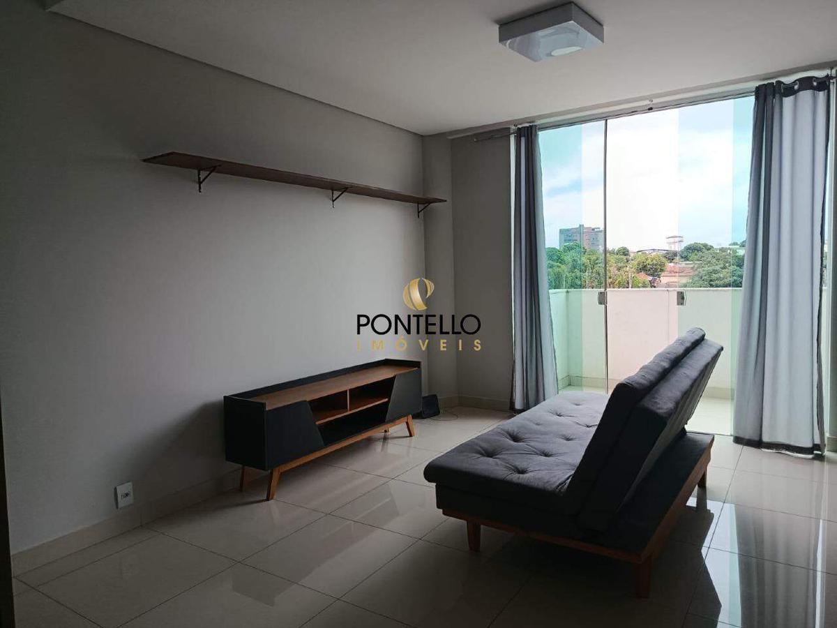 Com 1 quarto, sendo suíte com armário e uma sacada, sala com sofá e rack, cozinha estilo americana com armários, cooktop e geladeira, 1 banheiro social, área de serviço, e uma vaga de garagem.