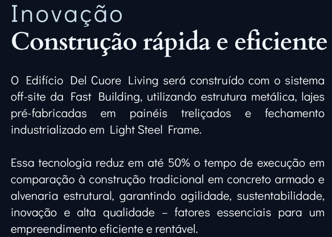 Em fase de construção, previsão de entrega Maio / 2027o prédio terá 8 andares, com 8 apartamentos por andar. O condomínio contará com pilotis, fachadas revestidas em pintura com detalhes em vidro, elevador social codificado, área livre com jardim, lavanderia compartilhada e um incrível rooftop com espaço gourmet.