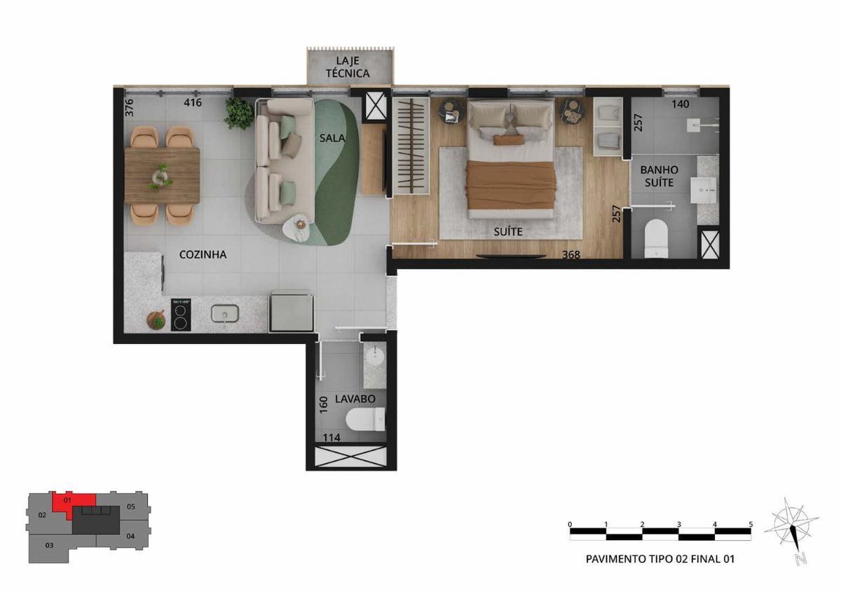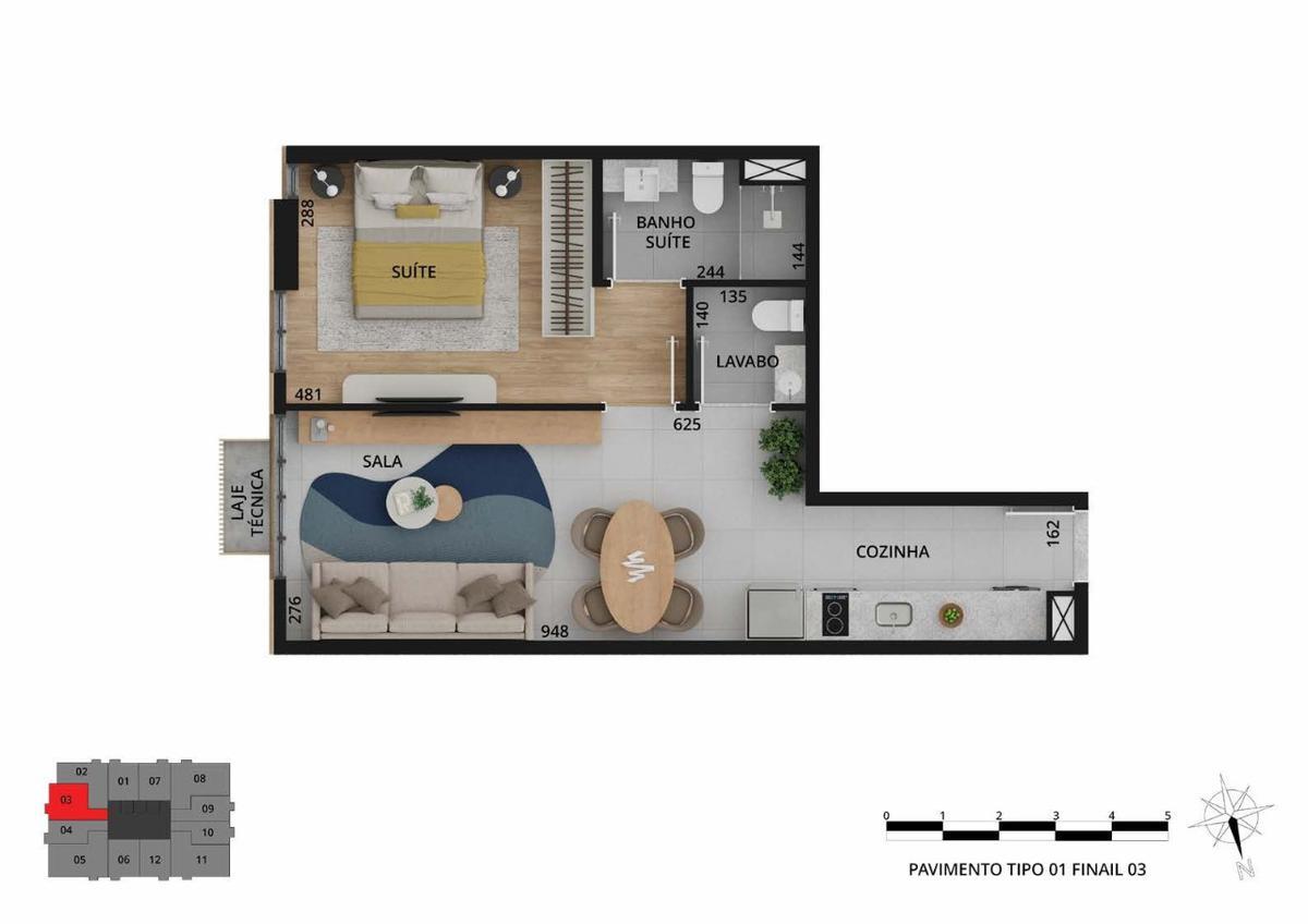 Apartamento com 1 quarto à venda no bairro Funcionários, 34m²
