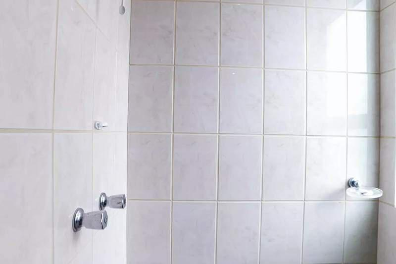 1 Quarto amplo com armários, piso em vinílico de madeira, sendo a suíte com bancada em granito, armários, espelho e box em blindex