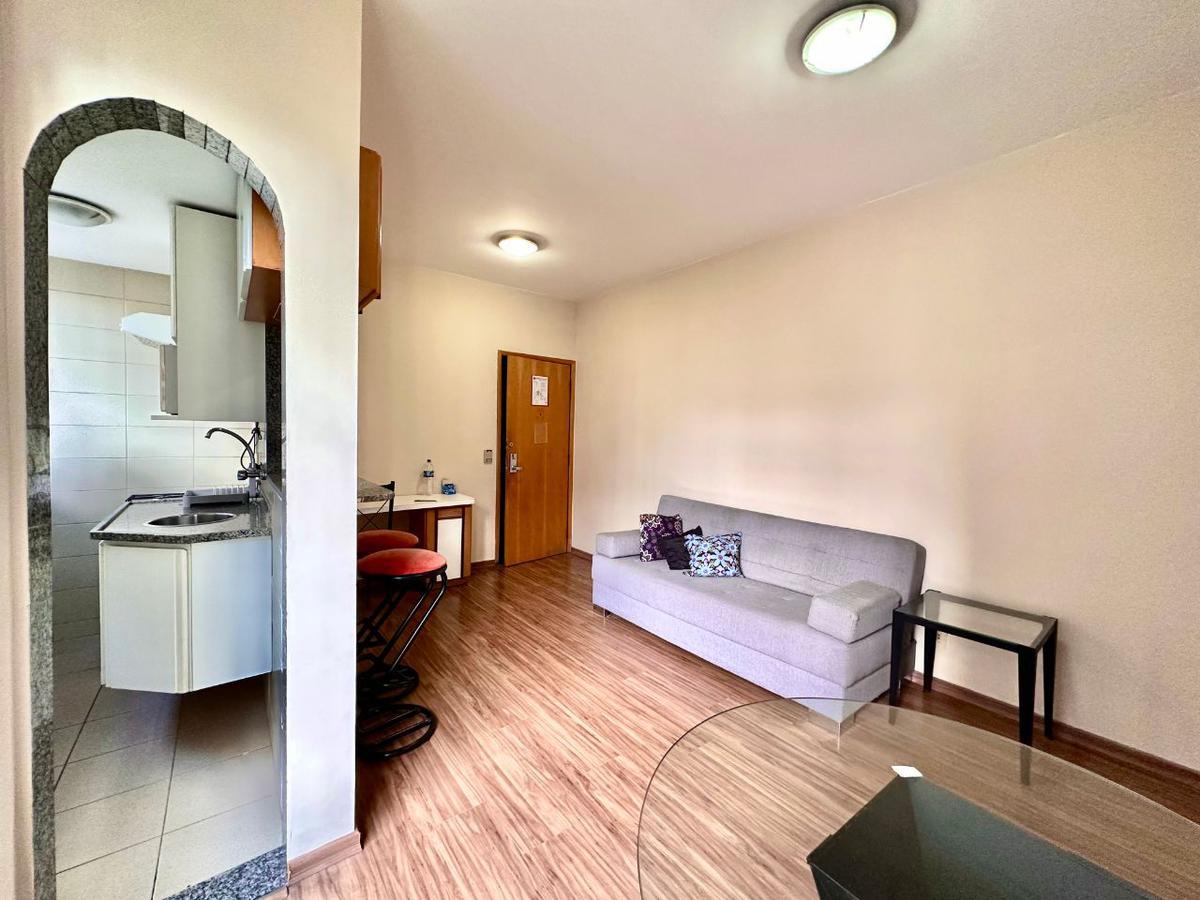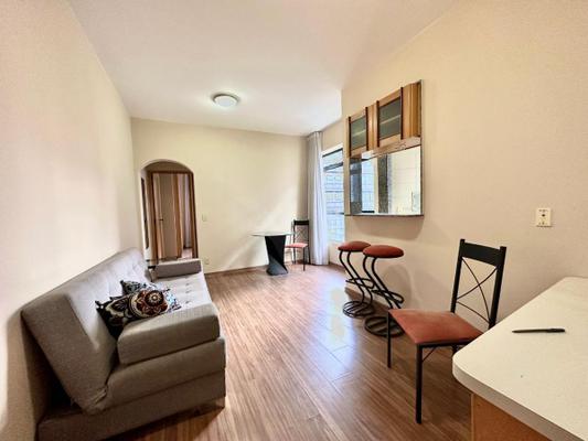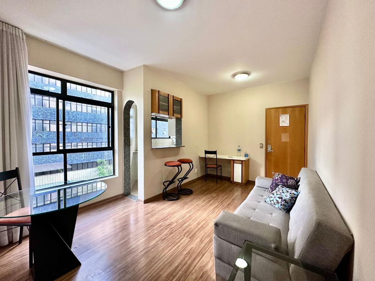 Apartamento 1 quarto Lourdes.Excelente apartamento com vista panorâmica, lazer, sala para dois ambientes, cozinha americana, quarto com armário e banho social com armários e blindes.Infraestrutura: Porteiro físico, elevadores, câmera de segurança, sistema de alarmes e gás canalizado. Localize-se próximo: ao colégio Bernoulli, Soma, Imaculada, Chromos e Claretiano. Faculdades: Isabela Hendrix, Una, Uni e Pitágoras. Próximo ao Mercado Central, Sesc Palladium e Shopping Cidade.