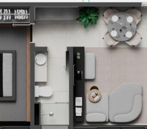 sala ampla podendo ser para 02 ambientes, piso em laminado de madeira, janelas amplas. 01 quarto, piso em laminado de madeira. Banheiro com box. Cozinha com armario, piso em ceramica e