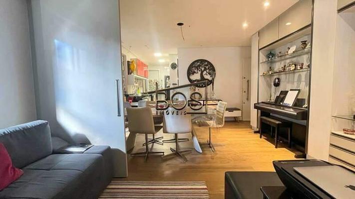 - Sala ampla para dois ambientes com piso laminado de madeira, teto rebaixado, conjugada com a cozinha estilo americana