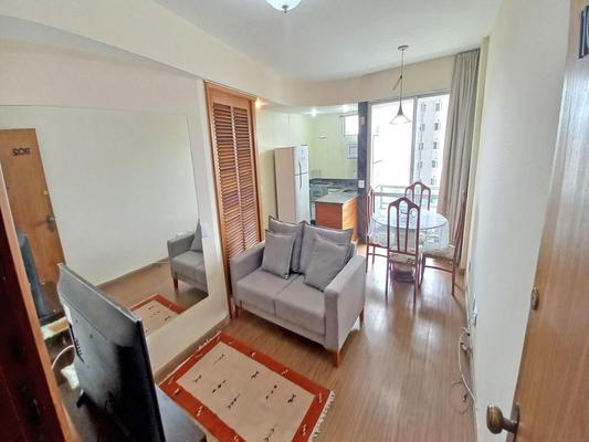 Apartamento de 40m2, mobiliado, bem aconchegante, com sala em piso laminado e varanda com vista da cidade. Cozinha americana com piso em granito, micro-ondas e geladeira. 01 quarto com TV. Banheiro com piso em granito, armarios e box blindex. 01 vaga de estacionamento coberta.