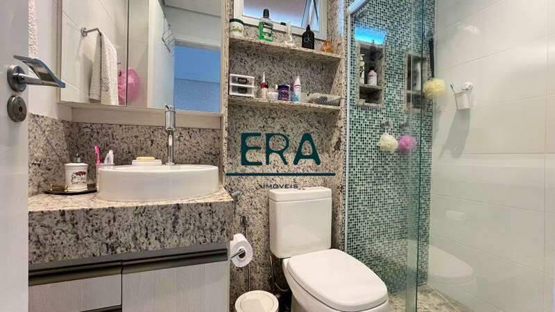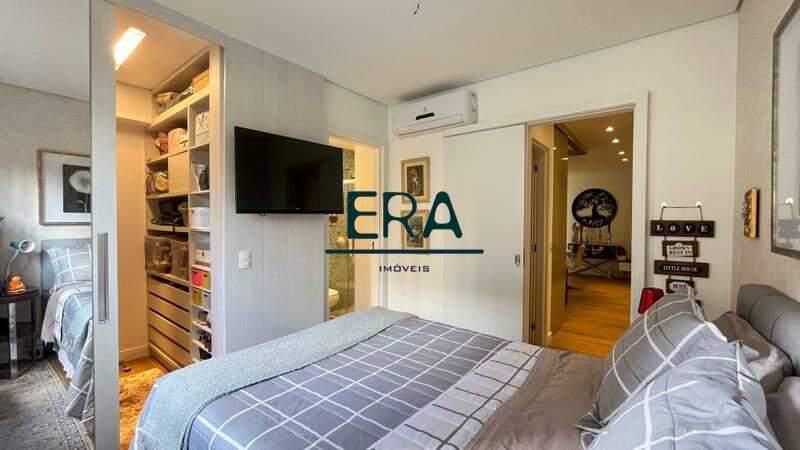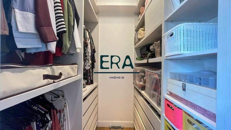 1 suíte ampla com piso em porcelanato, closet, box em blindex, espelho e armários planejados