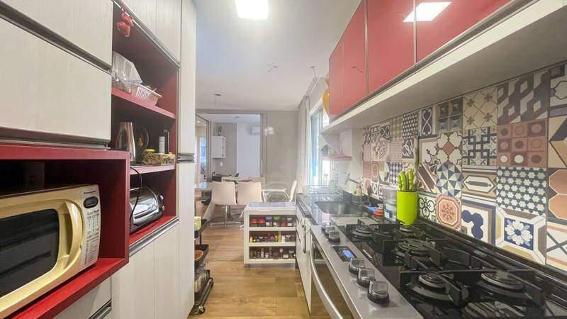 Cozinha ampla, toda com moveis planejados, iluminação planejada, com bancada em granito