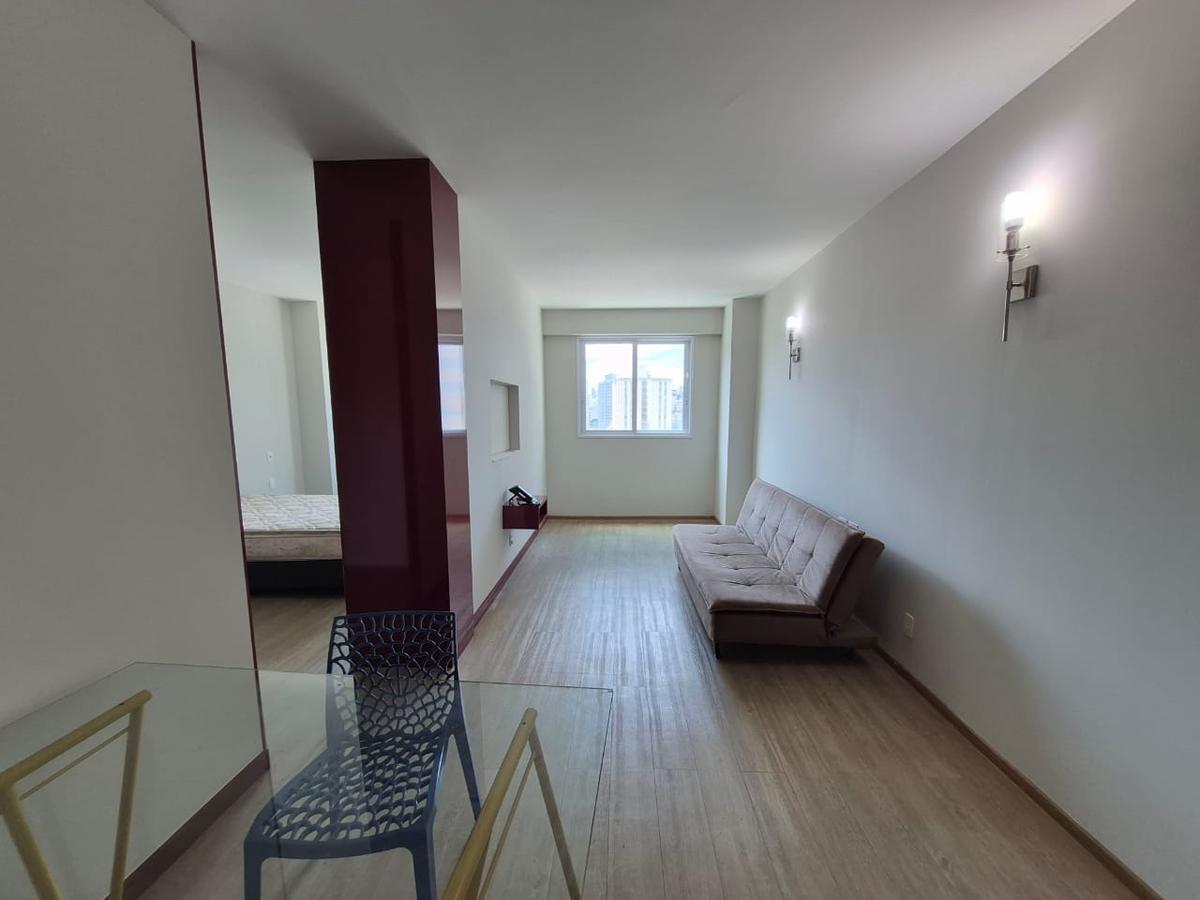 Apartamento com ótima localização no bairro Luxemburgo, com 48m² sendo um quarto com possibilidade de transformar em dois quartos, banho social amplo, sala com cozinha americana, sala e quarto com ar condicionado split, armários planejados e duas vagas de garagem em linha.