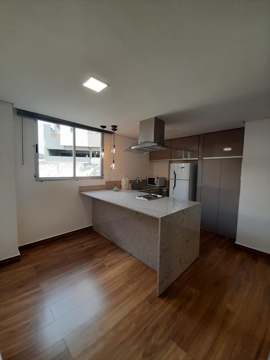 Descrição: apartamento composto por sala de estar, cozinha tipo americana, 01 quarto com suíte, com área aproximada de 40,00 m2 e 01 (uma) vaga de garagem coberto no 1º nível e 01 vaga descoberta no 2º nível. apartamento todo montado com armários, sala com sofá, ar condicionado, mesa lateral, cozinha com bancada em granito, fogão elétrico, coifa, geladeira, micro ondas, luminárias, área de serviço embutida, quarto com armários, cama box queen, cabeceira, luminárias, cortina, ar condicionado, banheiro com armários, espelho, box e chuveiro. ? o prédio possui espaço gourmet, salão de festas, lavenidaanderia coletiva, 01 elevadorua ? próximo à ufmg, lagoa da pampulha, avenida fleming, shopping del-rey, antônio carlos, epa plus, drogaria araújo e mcdonald's, fast food.