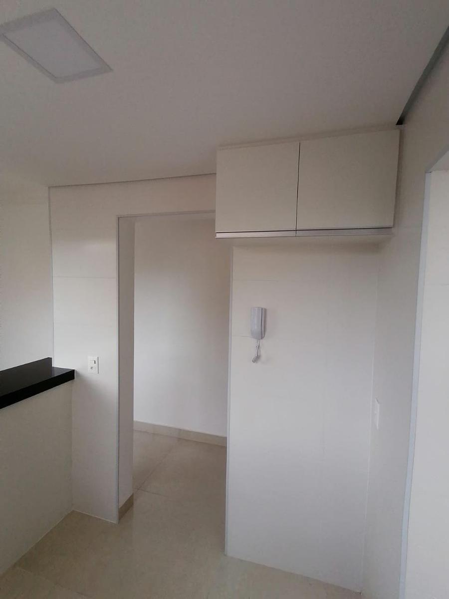 Apartamento de 1 Quarto com armário, sala, cozinha com armário e área serviço.