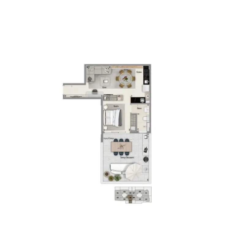 Unidades Residenciais: Apartamentos de alto padrão, com plantas inteligentes e excelente aproveitamento de espaço; 2 a 4 quartos, com opções de suíte e varanda gourmet (conforme tipologia); Ambientes amplos e integrados, com excelente iluminação natural; Acabamentos modernos e de qualidade superior; Infraestrutura para ar-condicionado, automação residencial e aquecimento a gás.