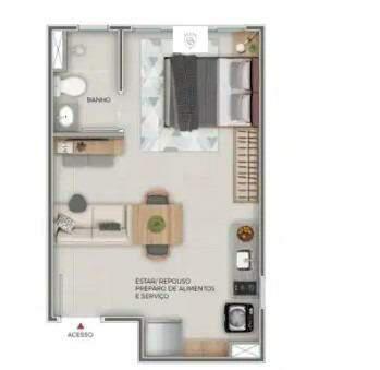 Sala ampla para 02 ambientes, 01 quarto confortável, banheiro social, cozinha planejada estilo americana e área de lavanderia