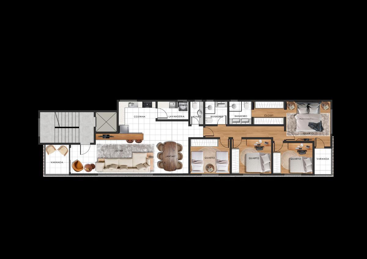 - 01 apartamento 127 metros 01 por andar - varanda arejada. - suite com closet. - acabamento de porcelanato porto belo. - acabamento em piso laminado vinilico nos quartos - infraestrutura para ar-condicionado. - grandes janelas em todos os ambientes. - 02 vagas de garagem paralelas