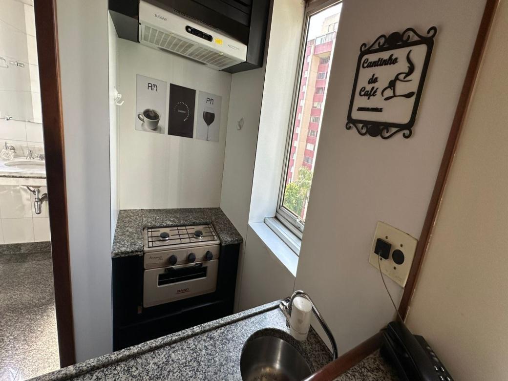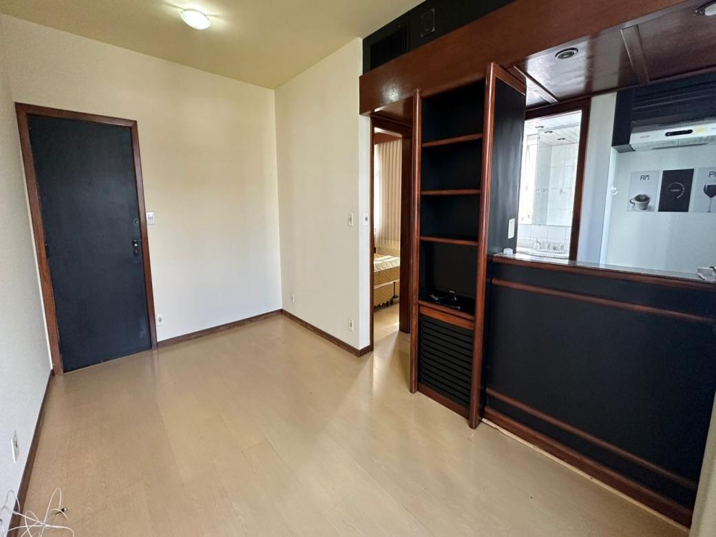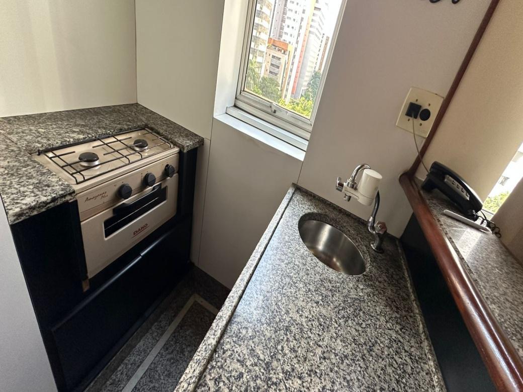 Boa opcao para estudantes! Apartamento semi mobiliado, de aproximadamente 32m . Sala com TV LCD de 32 polegadas. Banheiro em granito com box. Cozinha tipo americana com pequena pia, armarios, frigobar e fogao de 02 bocas com exaustor. 01 vaga de estacionamento conforme disponibilidade.