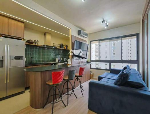 Excelente apartamento de 1 quarto, sendo 1 suíte, sala para 2 ambientes, cozinha integrada e área de serviço.