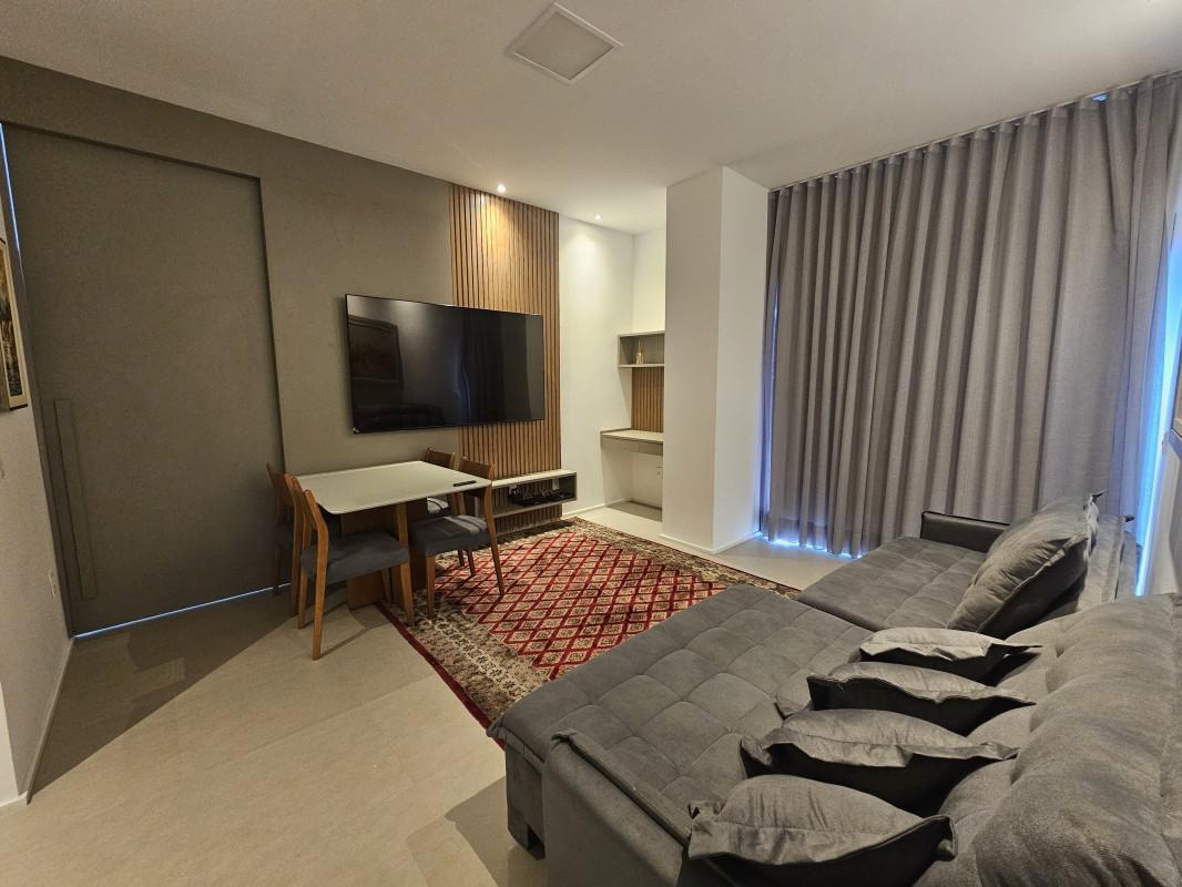 Área privativa mobiliada com 1 suíte ampla e confortável equipada com TV, lavabo, sala integrada para 2 ambientes com TV de 75¿¿ e cortinas já instaladas. Cozinha completa e funcional, equipada com Airfryer, cafeteira, sanduicheira e máquina de lavar louça testada. O imóvel conta ainda com ar-condicionado para maior conforto em todos os ambientes e 2 vagas de garagem cobertas.