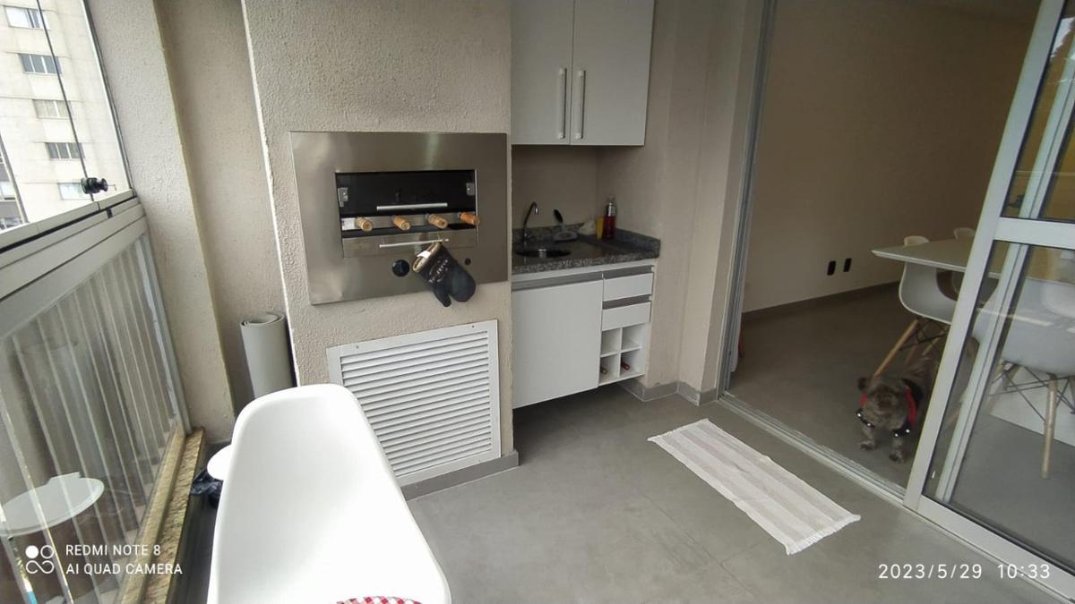 Unidade composta por 2 quartos - sendo 1 suíte, 1 banheiro social com armários, ampla sala reformada para 2 ambientes, varanda com churrasqueira, lavabo, cozinha com armários planejados, área de serviço e 2 vagas de garagem.