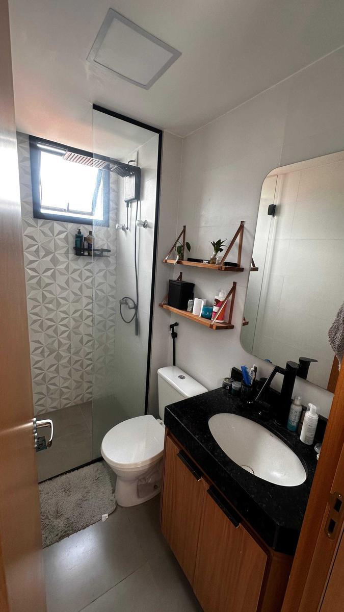 Apartamento 2 Quartos, sendo 01 suíte , os 02 quartos com armários novos, sala para 02 ambientes, uma varanda gourmet que pode se transformar em um terceiro quarto, 01 banheiro social com box e armários, cozinha estilo americana com bancada em granito preto, área de serviço conjugada com a cozinha.