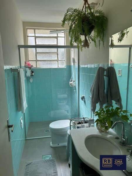 Banheiro social com armário e box em blindex