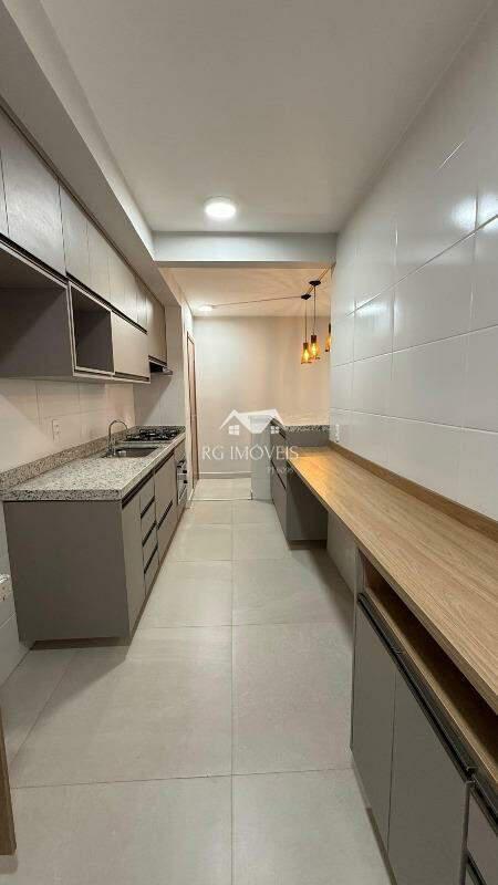 Cozinha Funcional: Totalmente montada com armários sob e sobre a bancada.
