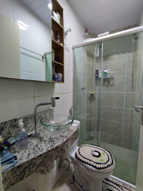 - Banheiro com Bancada em Granito, Cuba Sobreposta em Vidro e Box Blindex