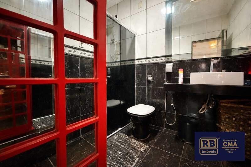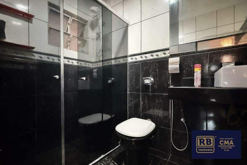 Banho social com armário, espelho e box em blindex.
