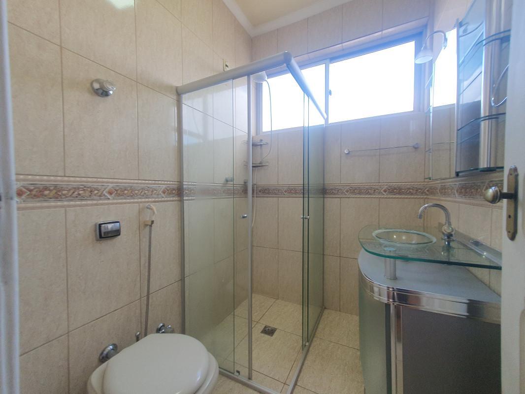 Banho social com box em blindex e armários