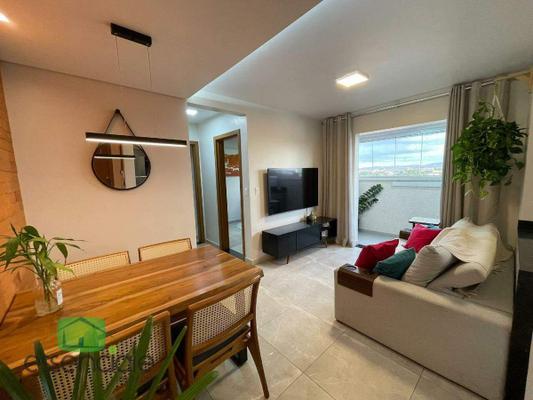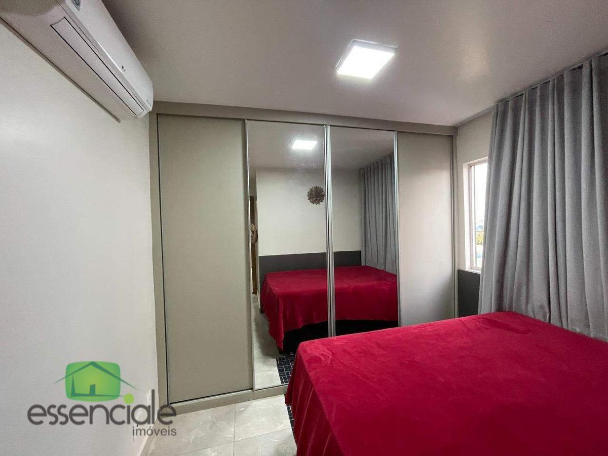 Apartamento em andar alto com vista panorâmica, 2 quartos sendo 1 quarto com suite e ar condicionado.