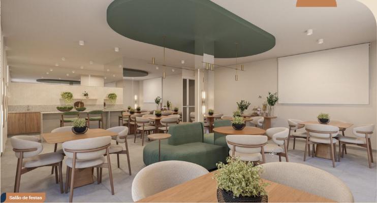 O condomínio oferece espaço fitness, um espaço gourmet, piscina, salão de festas, churrasqueira, playground, solarium, preparação para ar condicionado, água e gás com medidores individual.