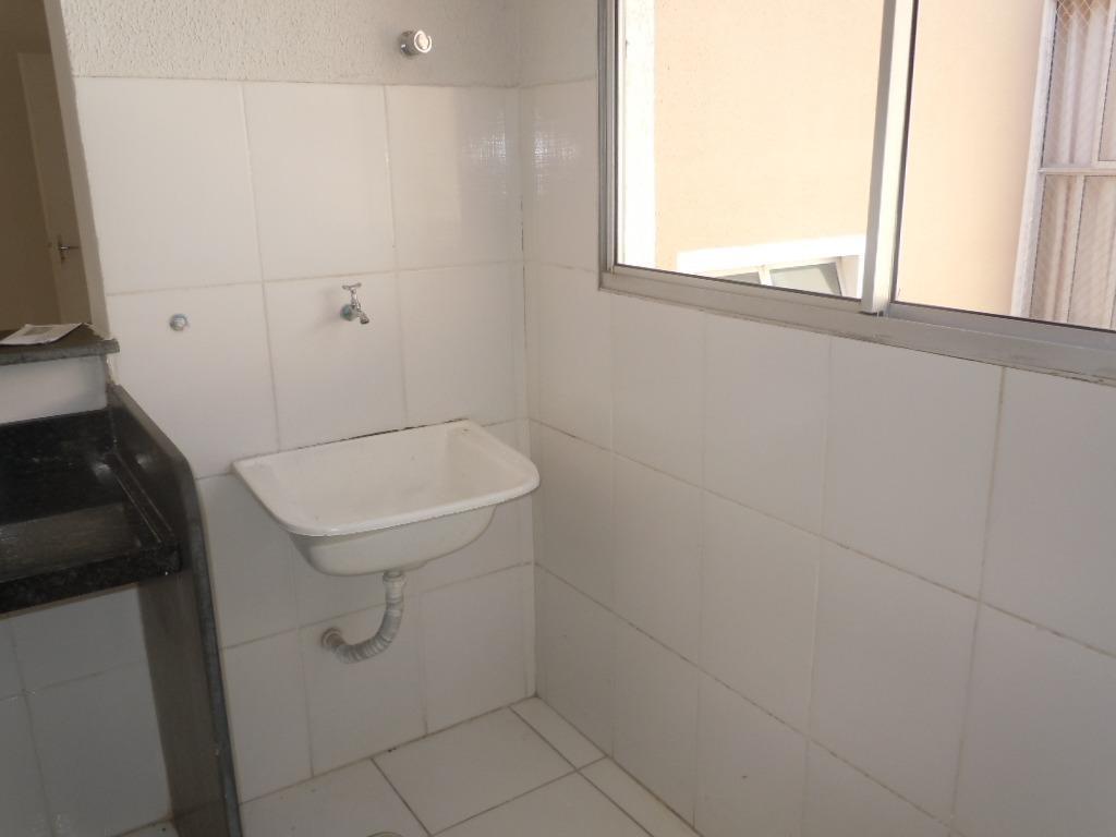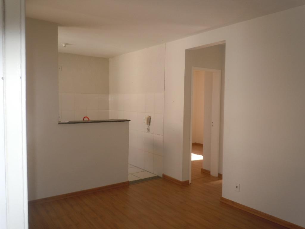 Apartamento com dois quartos , sala , banho social, cozinha, área de serviço e uma vaga garagem .