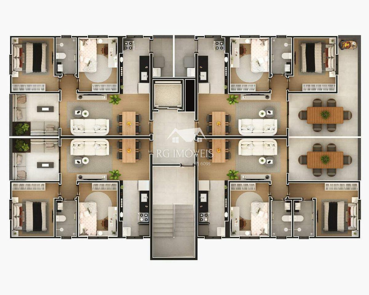 O projeto oferece apartamentos de 2 quartos, com opções de suíte e área privativa, além de uma cobertura linear de 3 quartos com suíte, atendendo diferentes necessidades de espaço.