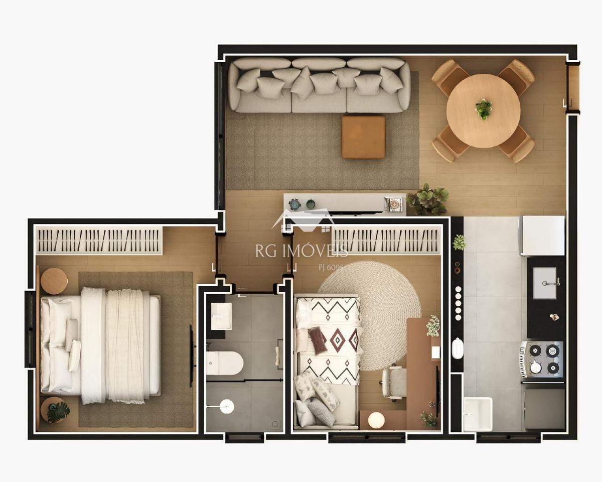 As unidades variam de 44 m² a 63 m², incluindo opções com área privativa e cobertura.