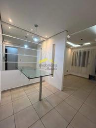 Apartamento com 02 quartos com armários planejados novos, escritório e janelas com cortinas / insufilm, piso em cerâmica.