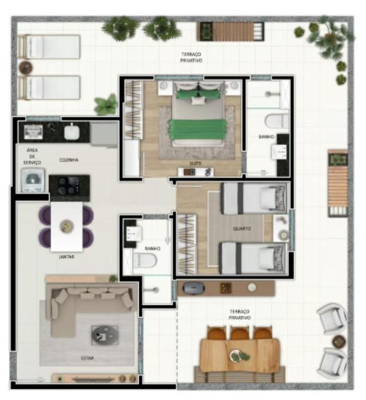 - 2 quartos com suíte e varanda