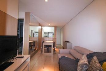 Sala Ampla para dois Ambientes: Sala para dois ambientes com rebaixamento em gesso e iluminação planejada; Varanda, com piso em cerâmica.