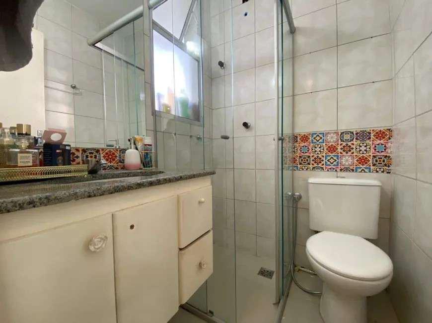 Banheiro social e da suíte, com bancada em granito, armários e box.